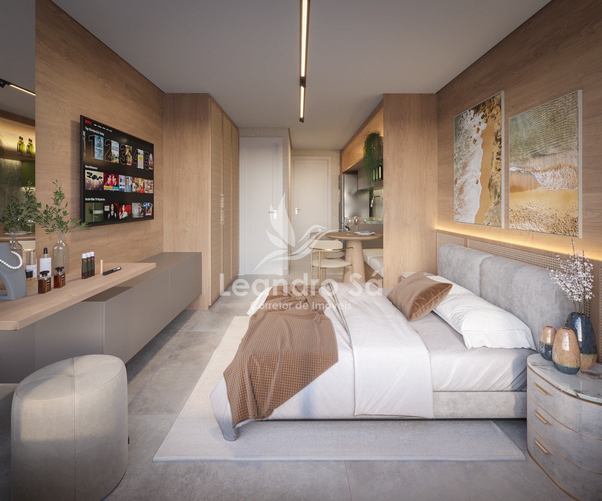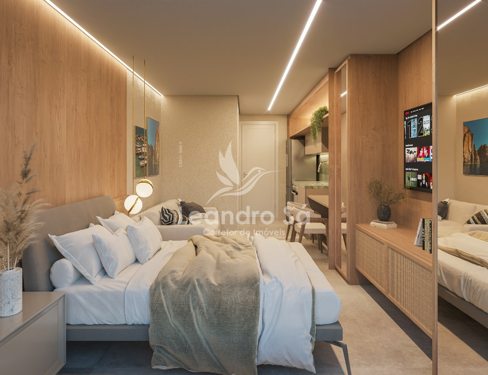 Apartamentos tipo studio, 1 e 2 quartos sendo 1 suíte, wc banheiro e copa
