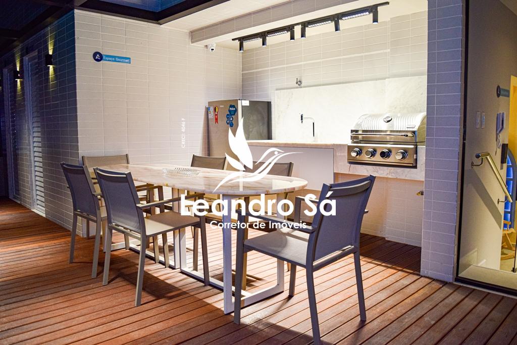 Ediício com hall social, elevador, salão de festas, academia, sala de jogos, espaço kids, espaço gourmet, piscina com prainha.