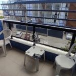 Edifício com hall social, portaria virtual, elevador, salão de festas, sauna e piscina com deck.