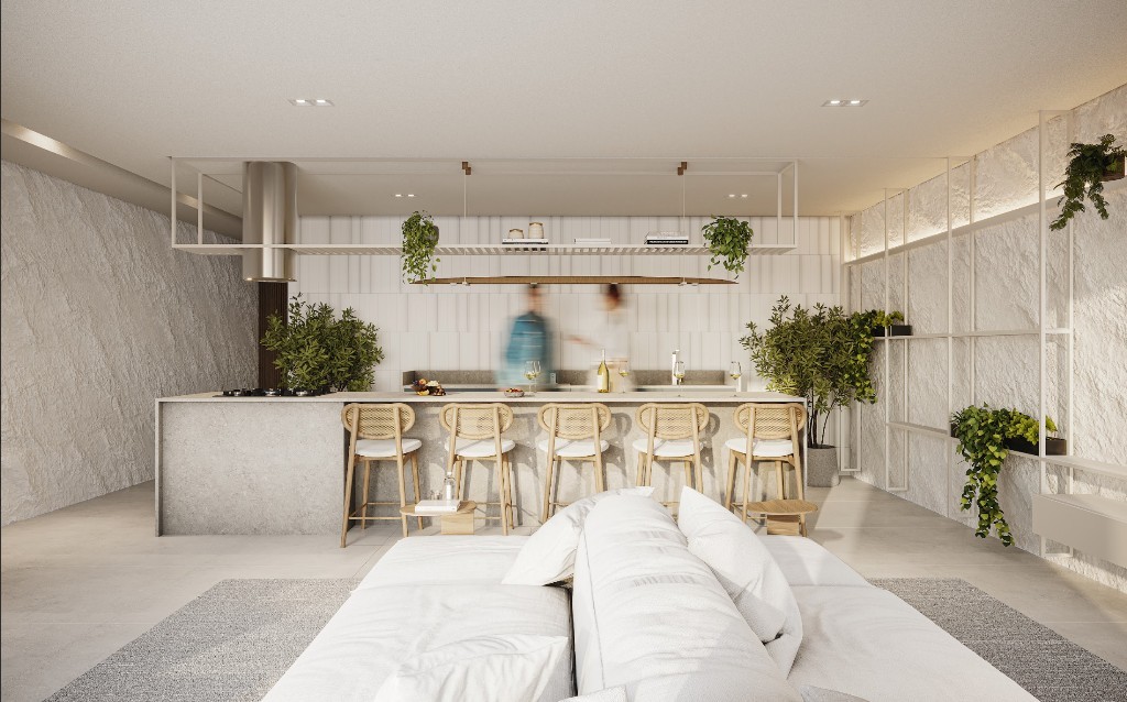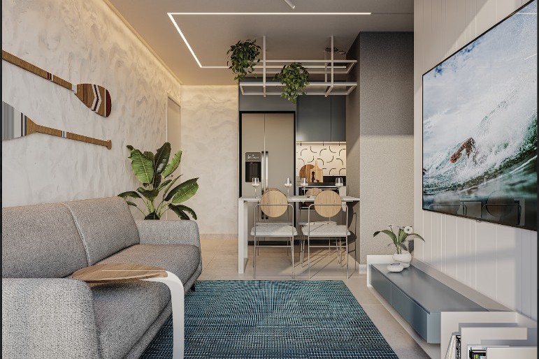 Apartamentos com 1, 2 e 3 quartos sendo 1 suíte, sala para 2 ambientes com varanda, wc social, cozinha / área de serviço.