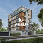 Apartamentos com 1 e 2 quartos sendo 1 suíte, sala para 2 ambientes com varanda, wc social, cozinha/área de serviço. Unidades Duplex – área externa com piscina e espaço gourmet com churrasqueira